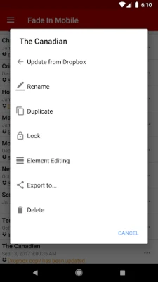 Upgrade to the full, paid version of Fade In Mobile to import your work from the full or demo desktop version of Fade In Professional Screenwriting Software (including imported PDF and Final Draft scripts).