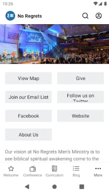 The annual No Regrets Christian men's conference, on the first Saturday in February, seats 4000 men at Elmbrook and reaches more than 15,000 men at host sites scattered across North America. This new kind of conference technology makes it possible for churches of any size or location to reach more of their own men. This app includes free conference video platform messages and free audio breakout sessions that can be used over and over again in your men's ministry.