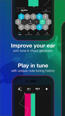 Tunable is a chromatic tuner, tone/chord generator, metronome, and recorder that helps you learn to play steadily, in tune, and on beat. Featuring a unique “tuning history” display for visualizing pitch over time, Tunable is the perfect toolkit for beginning to professional musicians.